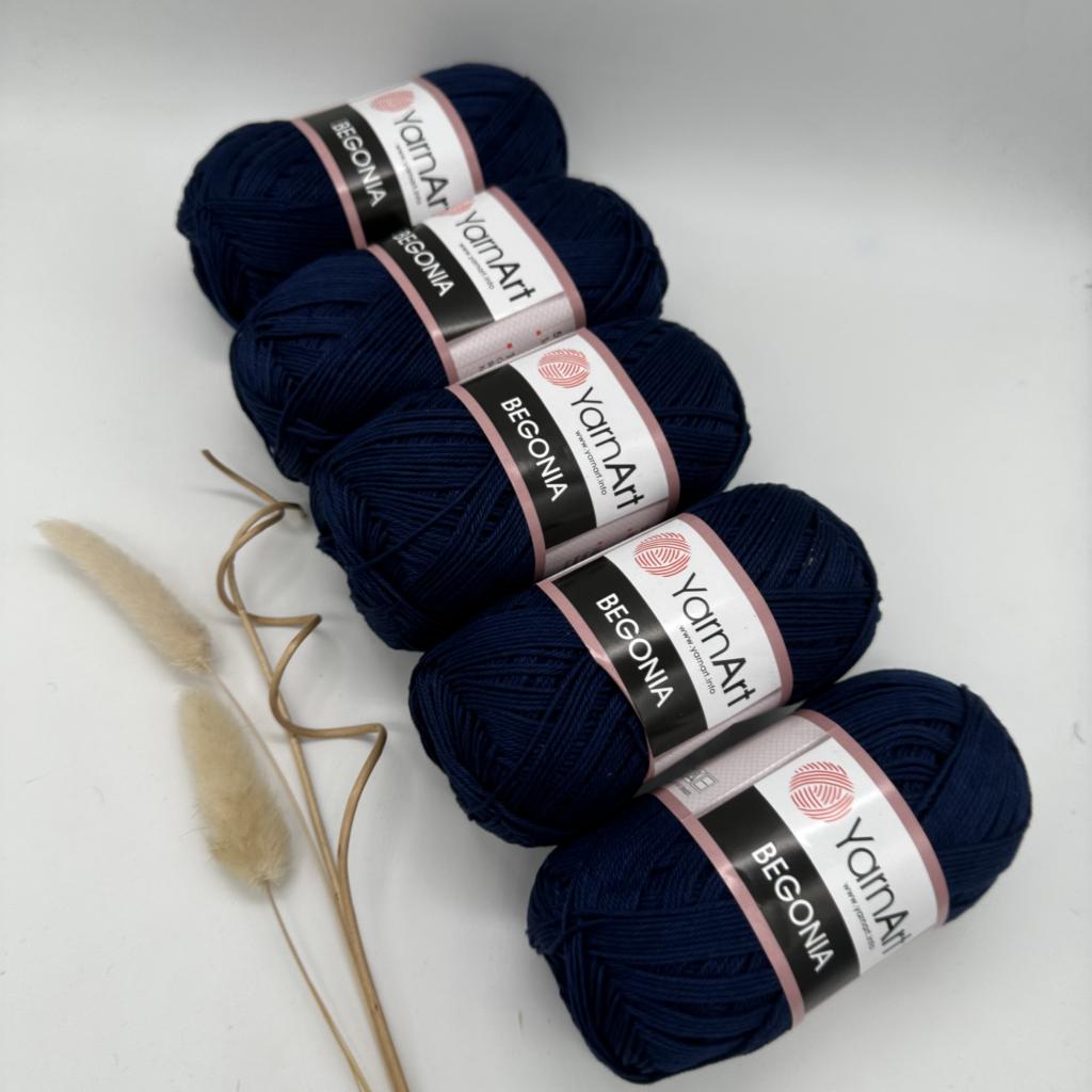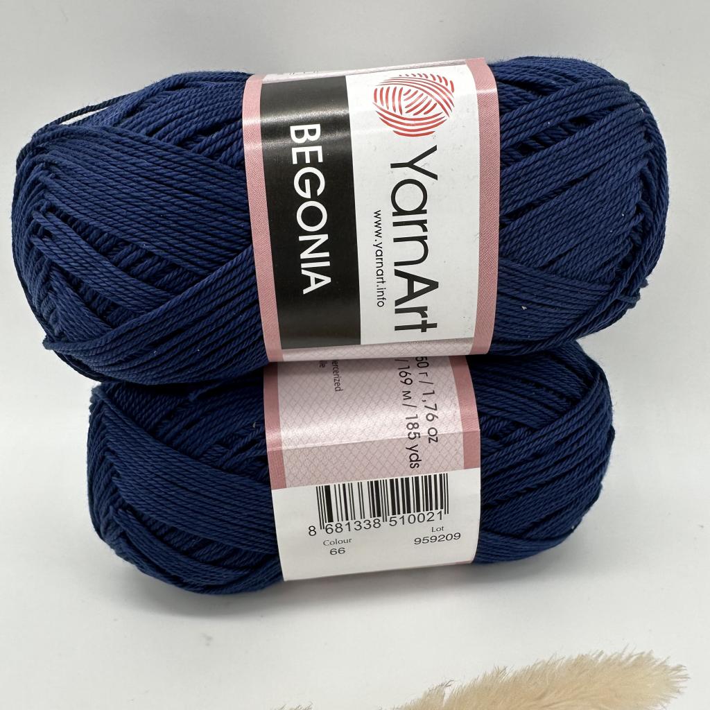 YarnArt Begonia полностью состоит из мерсеризованного хлопка. Благодаря натуральному составу изделия из этого материала не вызывают аллергии и не деформируются во время стирки. Очень красиво смотрится в ажурных узорах. Подходит для детских пледов, комбинезонов, платьев. Можно в одном изделии использовать нитку разных цветов, не линяет. Мягкая, гладкая, блестит, не скручивается. ЯрнАрт Бегония — это мягкий, нежный хлопок, немного блестящий. Нить среднего кручения, хорошо скользит. Красиво смотрится и в спицах, и в крючке. Цветовая палитра разнообразна, от мягких нежных оттенков, до сочных и насыщенных. Идеально подходит для вязания летних детских вещей.