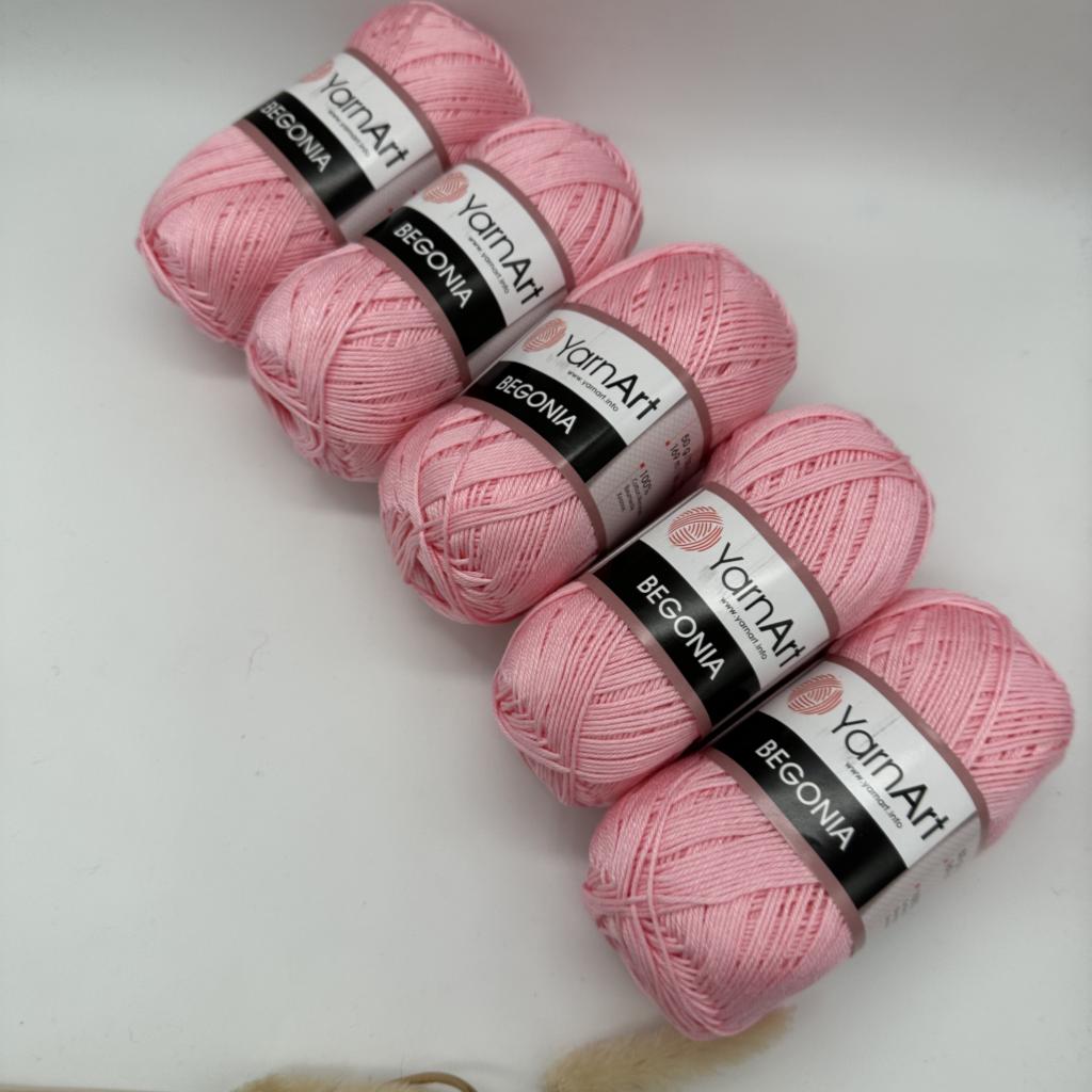 YarnArt Begonia полностью состоит из мерсеризованного хлопка. Благодаря натуральному составу изделия из этого материала не вызывают аллергии и не деформируются во время стирки. Очень красиво смотрится в ажурных узорах. Подходит для детских пледов, комбинезонов, платьев. Можно в одном изделии использовать нитку разных цветов, не линяет. Мягкая, гладкая, блестит, не скручивается. ЯрнАрт Бегония — это мягкий, нежный хлопок, немного блестящий. Нить среднего кручения, хорошо скользит. Красиво смотрится и в спицах, и в крючке. Цветовая палитра разнообразна, от мягких нежных оттенков, до сочных и насыщенных. Идеально подходит для вязания летних детских вещей.