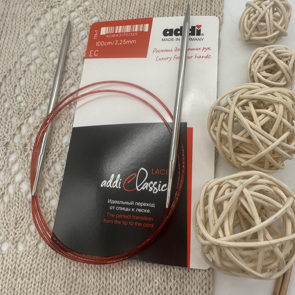 Металлические спицы круговые для вязания с удлиненным кончиком addiclassic lace. Удлиненный тонкий кончик позволяет вязать даже очень тонкой пряжей. Полые спицы с никелированной поверхностью позволяют вязать быстро и не чувствовать усталости. Спицы addi круговые имеют точный и гладкий переход от спицы к фирменной леске addi, что способствует легкому скольжению пряжи и делает процесс вязания удобным и комфортным.