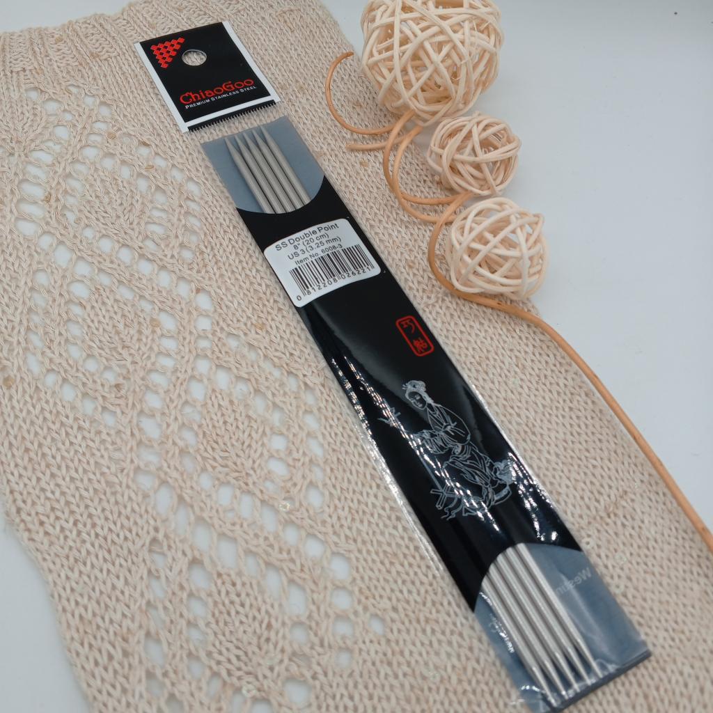 Спицы ChiaoGoo изготовлены из хирургической нержавеющей стали. В наборе 5 чулочных спиц chiaogoo. Идеально гладкая блестящая поверхность обеспечивает хорошее скольжение петель. Облегченные по весу спицы благодаря полой конструкции позволяют снизить нагрузку на руки. Кончики спиц чиагу имеют точную, качественно обработанную коническую форму. На каждой спице Чиагу лазером нанесен ее диаметр. На длине 20 см удобно вязать манжеты перчаток и варежек, носки и чулки, рукава, закручивать макушки шапок. Спицы премиум класса.