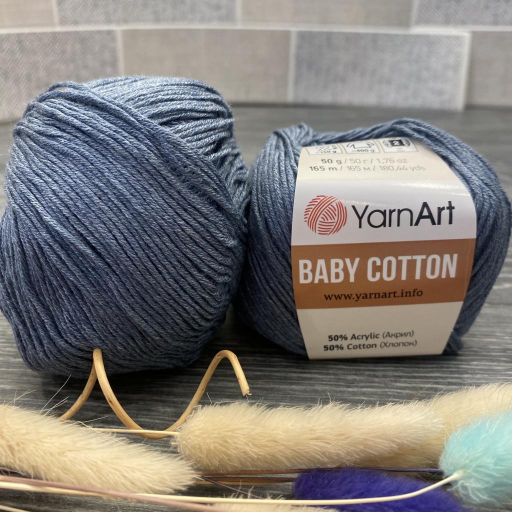 Пряжа Yarnart Baby Cotton ( ЯрнАрт Бэби Коттон ) - это нежная хлопковая экологичная пряжа специально разработана для вязания детских вещей, она не колется, гипоаллергенна, дарит приятное ощущение прохлады в жаркие весенние и летние дни, позволяют коже ребёнка свободно дышать, предотвращая перегрев в тёплую погоду. Уникальный состав беби котон, включающий 50% качественного хлопка и 50% акрила, обеспечивает оптимальное сочетание мягкости и практичности. Хлопковое волокно бэби коттон – это залог естественной воздухопроницаемости и гигроскопичности. Хлопок также обладает природными антибактериальными свойствами, минимизируя риск раздражения. Добавление акрила придает пряже необходимую прочность и износостойкость. Акрил улучшает форму изделия и препятствует деформации после стирки и носки, а также упрощает уход за готовым изделием, вещи легко стираются и быстро сохнут. Даже после многократных стирок одежда сохраняет свой первоначальный вид и яркость цвета. Нить средней толщины, благодаря чему пряжа подходит для различных техник вязания, подходит как для создания гладкого полотна, идеального для детских боди или ползунков, так и для сложных ажурных узоров или объёмных кос.
