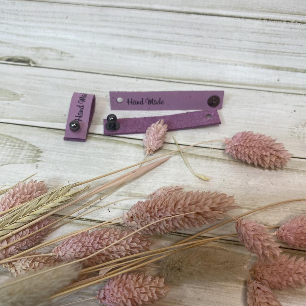 Аксессуары для одежды и обуви Кожаная бирка с кнопкой "Hand Made" 13*7см (сирень)
