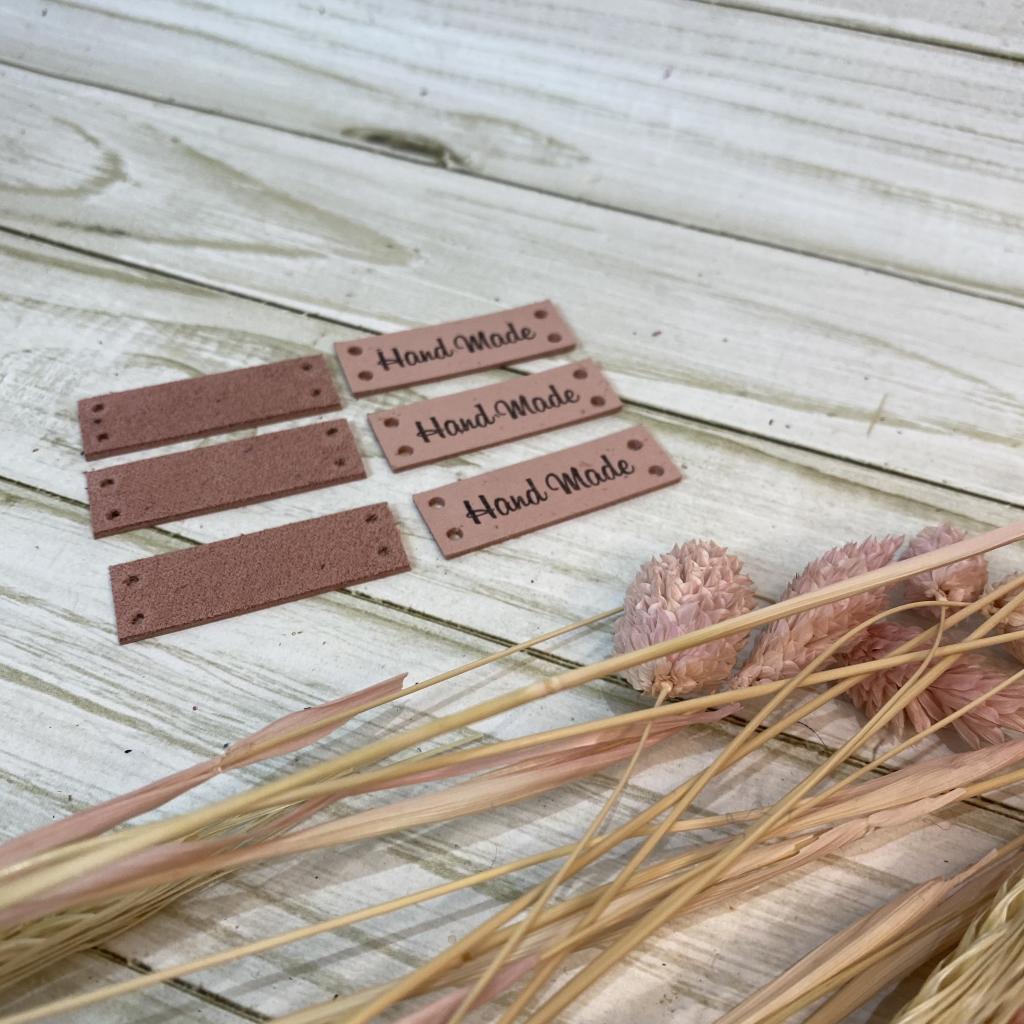 Аксессуары для одежды и обуви Кожаная бирка пришивная "Hand Made" 13*7см (розовая) Цена за 1 шт