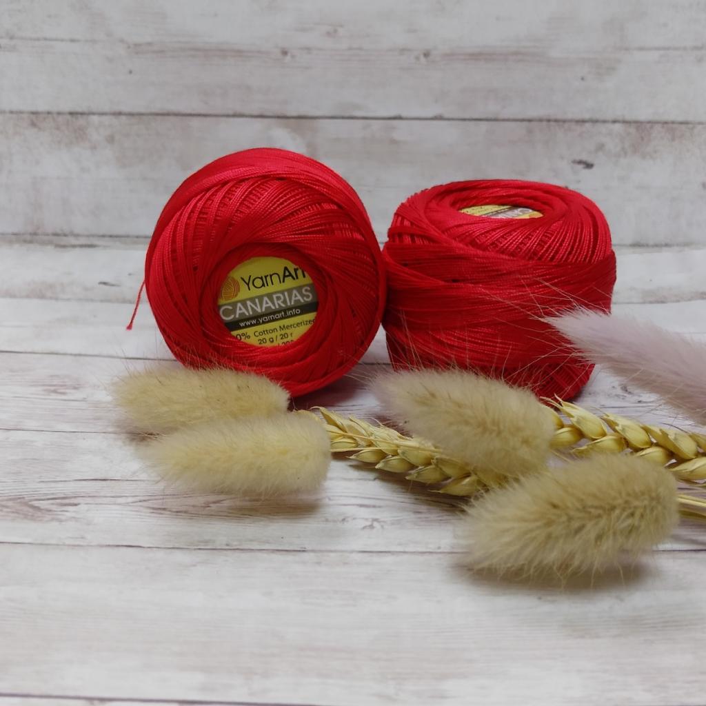 ЯрнАрт канариас 5 мотков. Тонкий мерсеризованный хлопок для летнего вязания. Ровная, хорошо скрученная нить. Область применения: кружево, салфетки, скатерти, микроамигуруми, бельё крючком. Классическая пряжа для салфеток, скатертей, ажурных воротничков и других изделий, где важно, чтобы ниточка была тоненькая, но в то же время крепкая. На вязаном образце 10х10см получается 42 ряда по 24 петель. Пряжа для вязания YarnArt Canarias. Canaris от YarnArt популярная пряжа на лето. В своём составе Канарис имеет 100% хлопок, хлопковая пряжа не пилингуется - это означает, что изделие из нее можно неоднократно распускать и перевязывать снова. Производители рекомендуют спицы №2-2.5. Состав: 100% мерсиризованный хлопок.