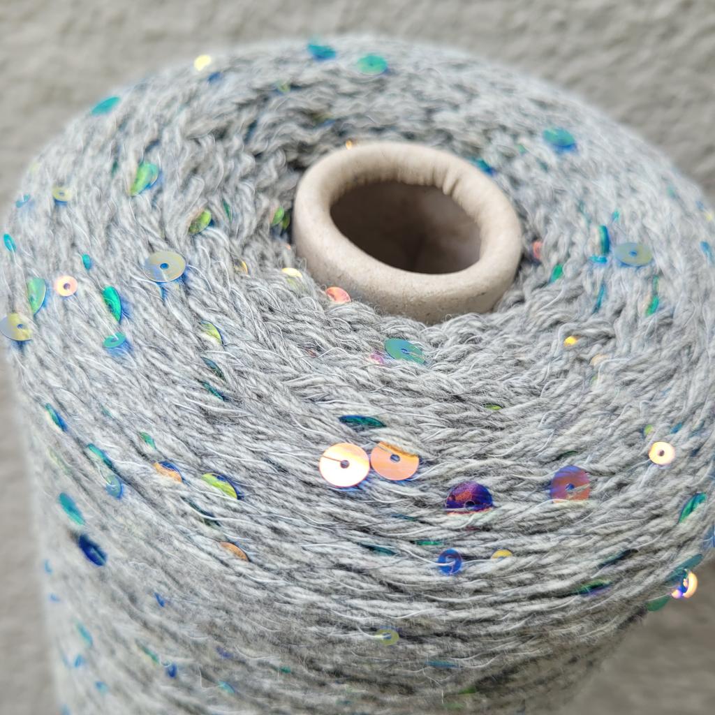 Знаменитые итальянские пайетки 6+3 мм в сочетании с мериносом экстрафайн
