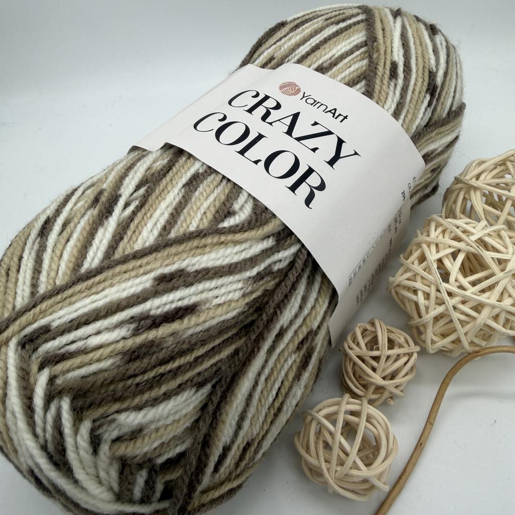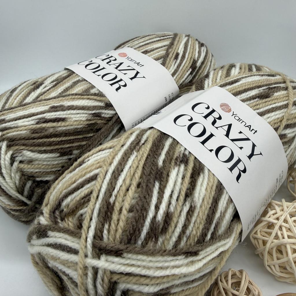 ЯрнАрт крези колор. Пряжа очень мягкая, приятная на ощупь и вяжется быстро. Ниточка очень экономная, не скатывается. В результате получаются очень оригинальные и забавные рисунки. Может с успехом применяться для вязания кардиганов, пуловеров и пр. Нить YarnArt Crazy Color скручена из 3-х волокон, скрутка классическая спиральная, средней плотности; волокна хорошо сцеплены, нить выглядит как целостная. Нитка окрашена в контрастные цвета, которые в полотне раскладываются в виде ленивого жаккардового рисунка, цвета имеют четкую последовательность. Поэтому при ее вязании можно использовать самые простые модели и узоры.