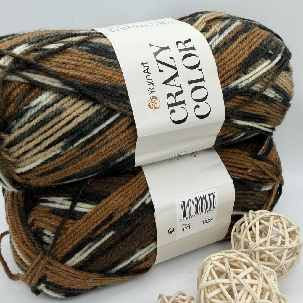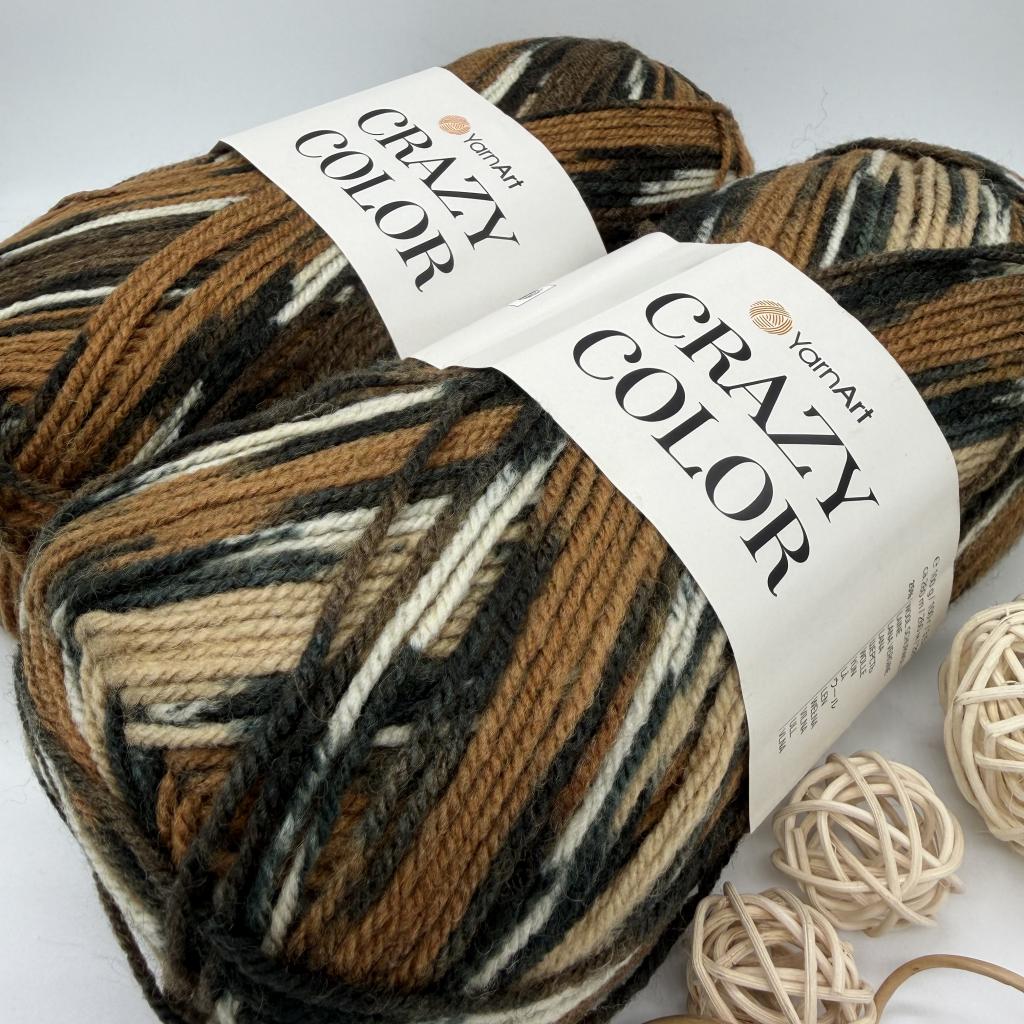 ЯрнАрт крези колор. Пряжа очень мягкая, приятная на ощупь и вяжется быстро. Ниточка очень экономная, не скатывается. В результате получаются очень оригинальные и забавные рисунки. Может с успехом применяться для вязания кардиганов, пуловеров и пр. Нить YarnArt Crazy Color скручена из 3-х волокон, скрутка классическая спиральная, средней плотности; волокна хорошо сцеплены, нить выглядит как целостная. Нитка окрашена в контрастные цвета, которые в полотне раскладываются в виде ленивого жаккардового рисунка, цвета имеют четкую последовательность. Поэтому при ее вязании можно использовать самые простые модели и узоры.