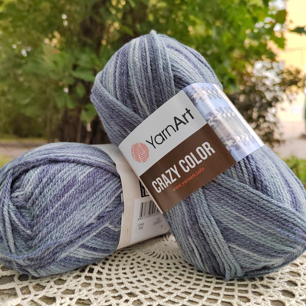 ЯрнАрт крези колор. Пряжа очень мягкая, приятная на ощупь и вяжется быстро. Ниточка очень экономная, не скатывается. В результате получаются очень оригинальные и забавные рисунки. Может с успехом применяться для вязания кардиганов, пуловеров и пр. Нить YarnArt Crazy Color скручена из 3-х волокон, скрутка классическая спиральная, средней плотности; волокна хорошо сцеплены, нить выглядит как целостная. Нитка окрашена в контрастные цвета, которые в полотне раскладываются в виде ленивого жаккардового рисунка, цвета имеют четкую последовательность. Поэтому при ее вязании можно использовать самые простые модели и узоры.