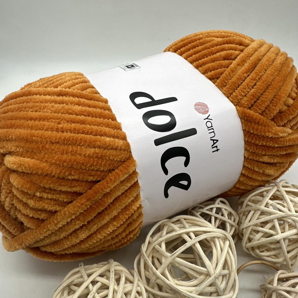 YarnArt Dolce ( Ярнарт Дольче ) мягкая и приятная на ощупь плюшевая пряжа, чаще всего дольче используют для создания популярных зефирных игрушек. Нить yarnart dolce шелковистая, обладает небольшим блеском, мягкая, ворс плотный, не осыпается. Yarnart dolce ( ярнарт дольче ) гипоаллергенна (100% микрополиэстер), подходит для вязания детских вещей, пледов, а также аксессуаров и различных интерьерных изделий для дома. Производитель рекомендует использовать крючок или спицы 4-6 мм.