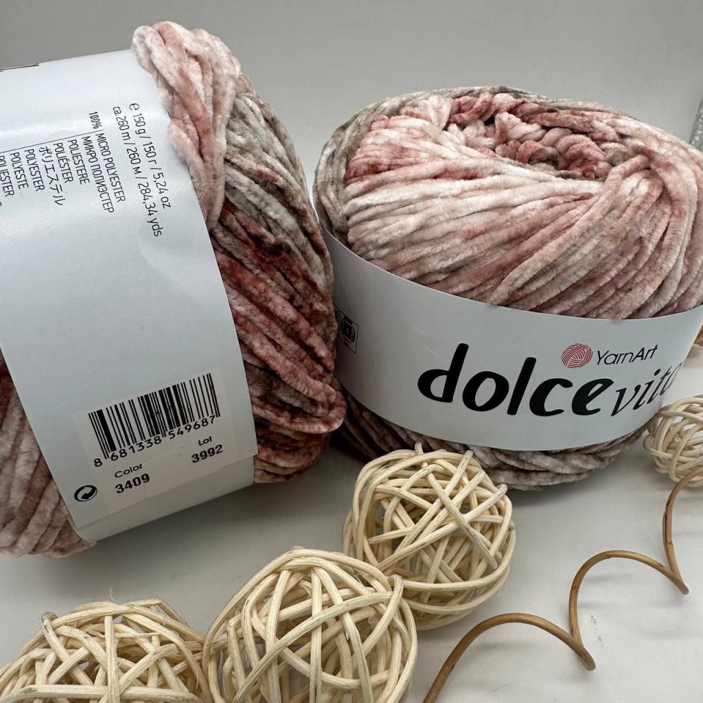 Мягкая и приятная на ощупь плюшевая пряжа. Чаще всего эту пряжу используют для создания популярных зефирных игрушек. Dolce прекрасно подойдет для вязания детских пледов, а также аксессуаров и различных интерьерных изделий для дома. Состав: 100% микрополиэстер