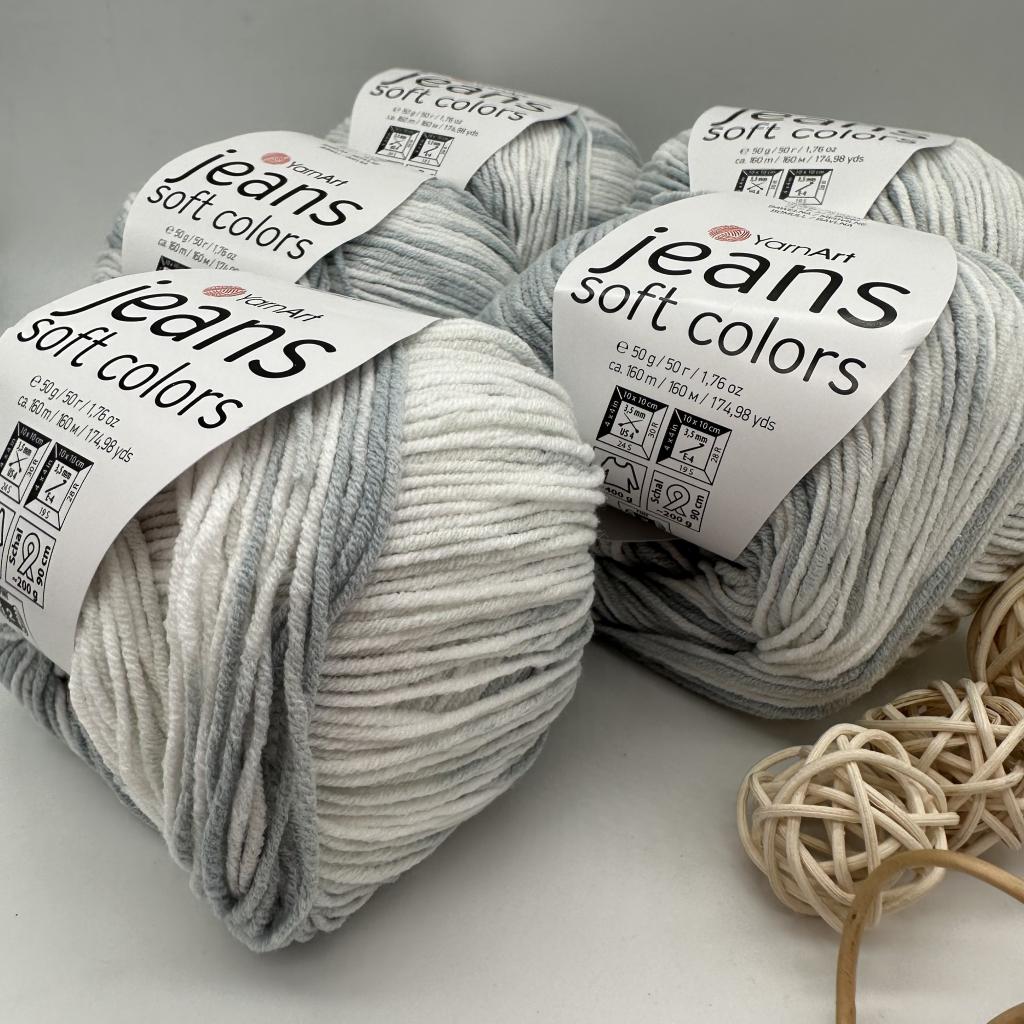 Yarnart Jeans Soft Colors ( Ярнарт Джинс софт колорс ) - пряжа секционного окрашивания, принтованная расцветка и приятная на ощупь бархатистая нить. Jeans soft colors удобная в работе, не слоится при вязании, не скатывается и не линяет при стирке, комфортна при носке. Красивые цветовые переходы, гармонично сочетаются друг с другом, создавая в изделии красивый принт. Классическую пряжу Ярнарт джинс знают уже давно, а пряжа Джинс софт колорс - это новое цветовое прочтение той самой классики. Пряжа имеет такую же крутку, фактуру, толщину и плотность, поэтому можно комбинировать их между собой. Изделия, связанные из этой пряжи, долго сохраняют свою форму и цвет, не скатываются. Идеально подходит для вязания игрушек, летних-осенних вещей для детей и взрослых.