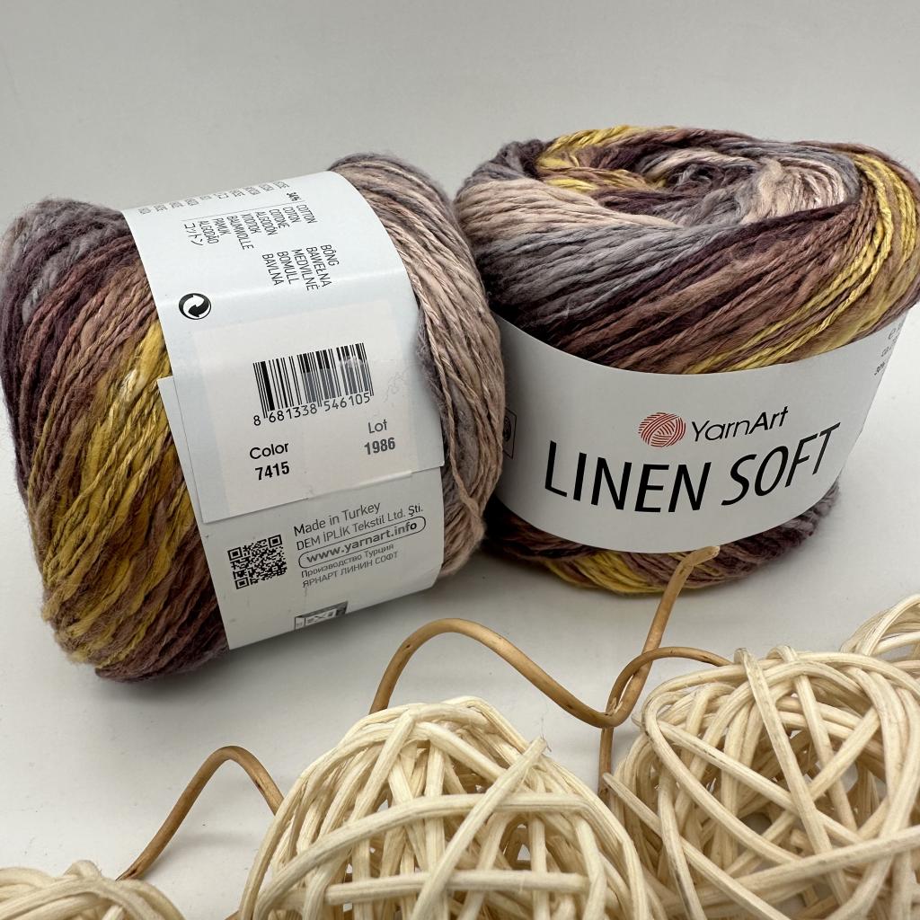 Linen Soft от Yarnart ( Ярнарт ) - это летняя новинка сезона 2024 года, уникальная смесь натуральных материалов вкупе с палитрой натуральных оттенков, наилучшим образом поможет создать стильную вещь или аксессуар на жаркий сезон. Лён в составе придает охлаждающий эффект, а дышащий хлопок обеспечит исключительный комфорт. Вискоза для скрепления, созданная из натуральных волокон. Матовая нить из хлопка и льна переплетена с нитью вискозы, которая придает пряже легкий блеск. Пряжа linen soft неравномерна по толщине - она варьируется от 1 до 3 мм. Пряжа очень приятна в вязании и носке. Вискоза придает изделию нежность и мягкость.