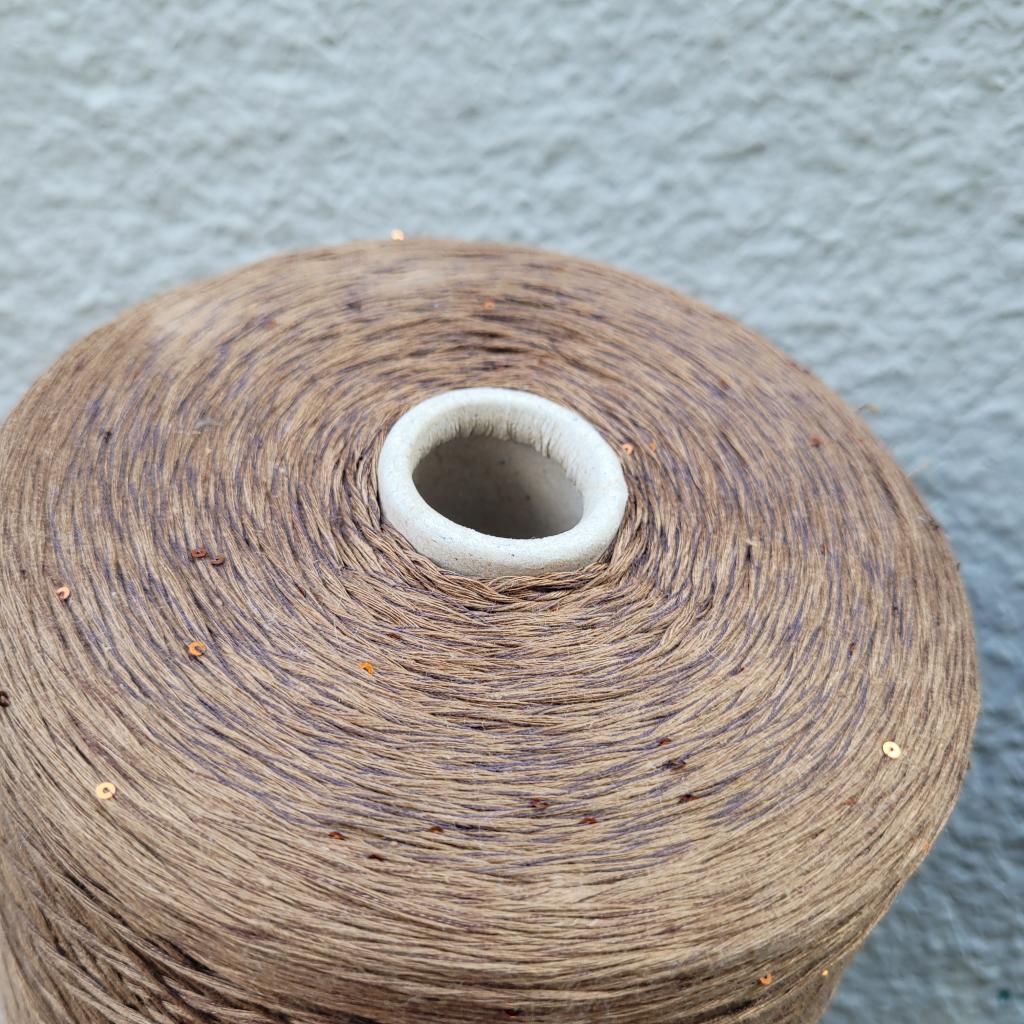 Пряжа в бобинах Lino 4400 с пайетками табак. Цена за 10гр