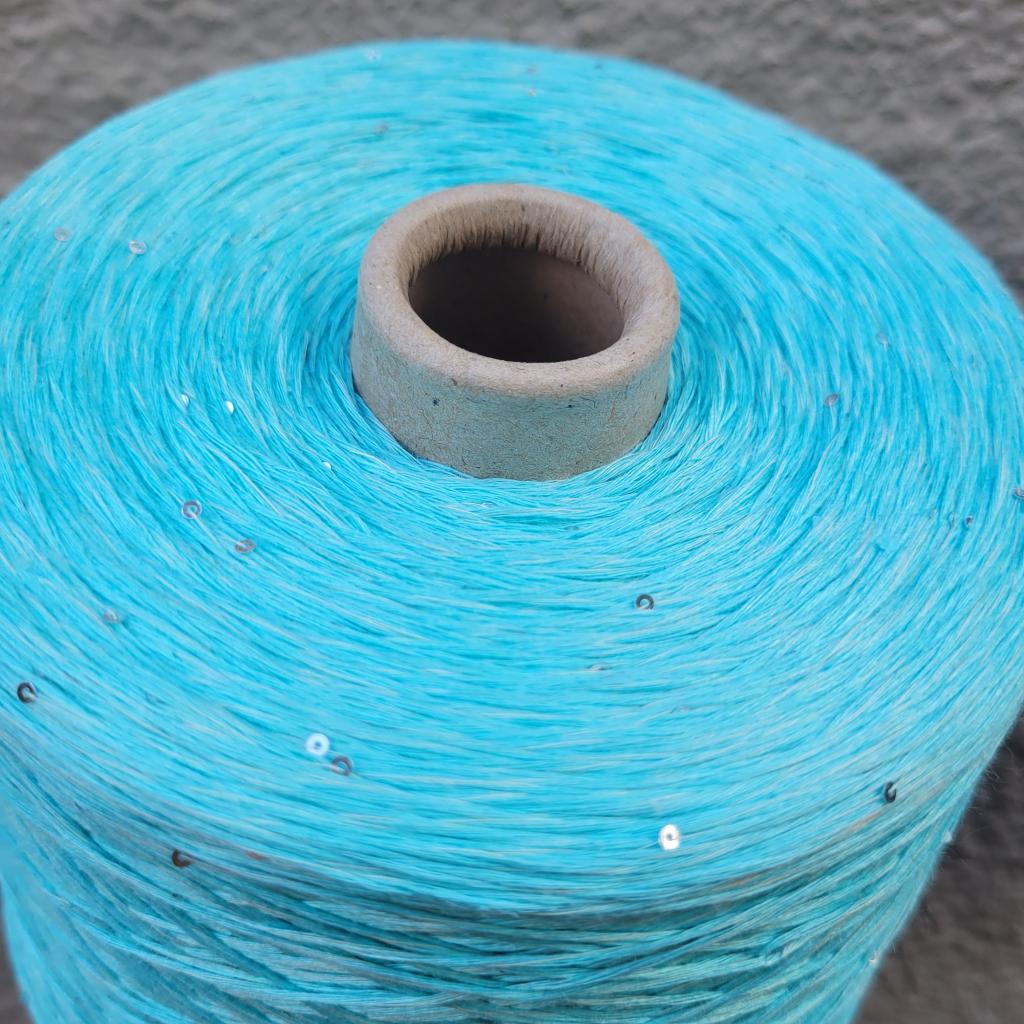 Пряжа в бобинах Lino 4200 с пайетками топаз. Цена за 10гр
