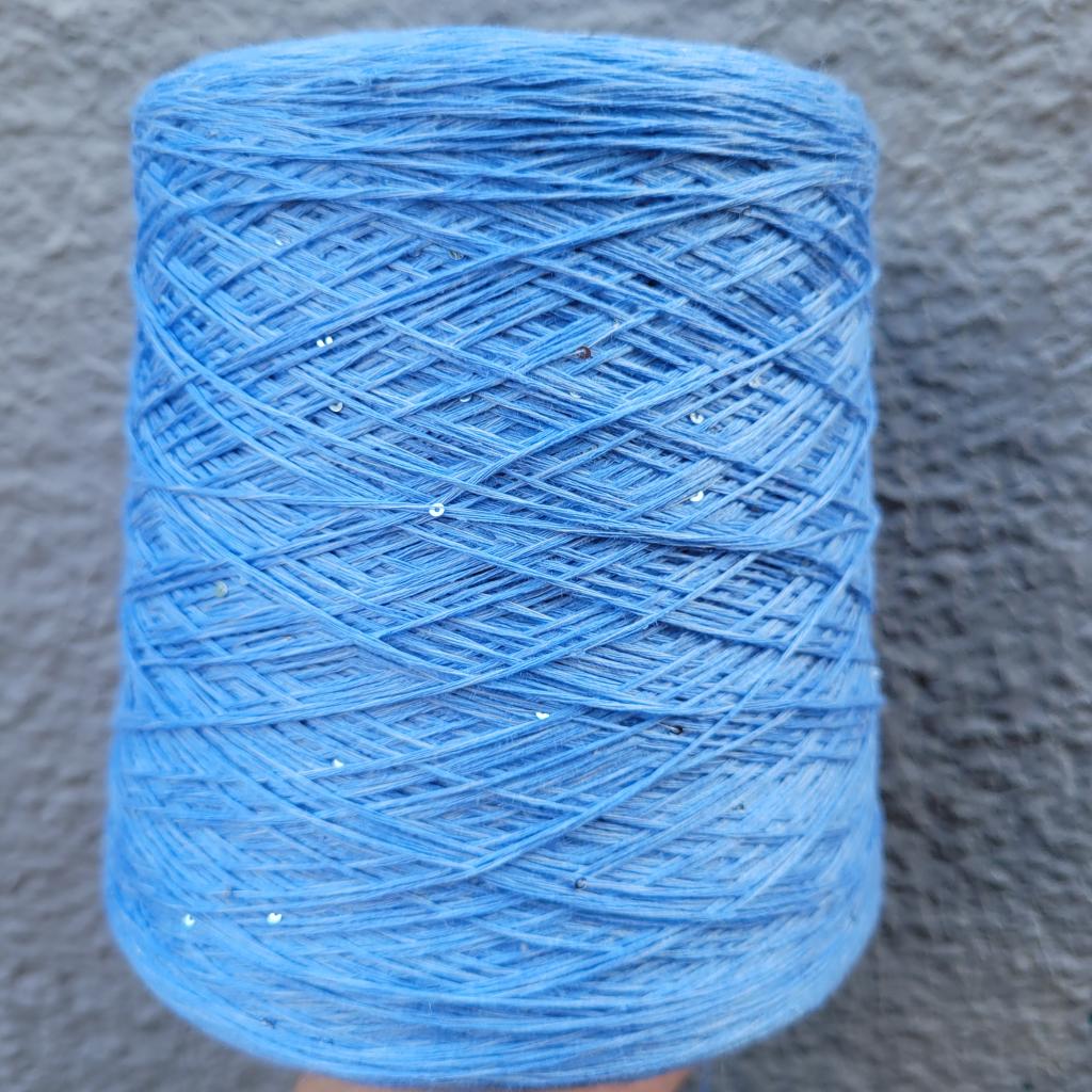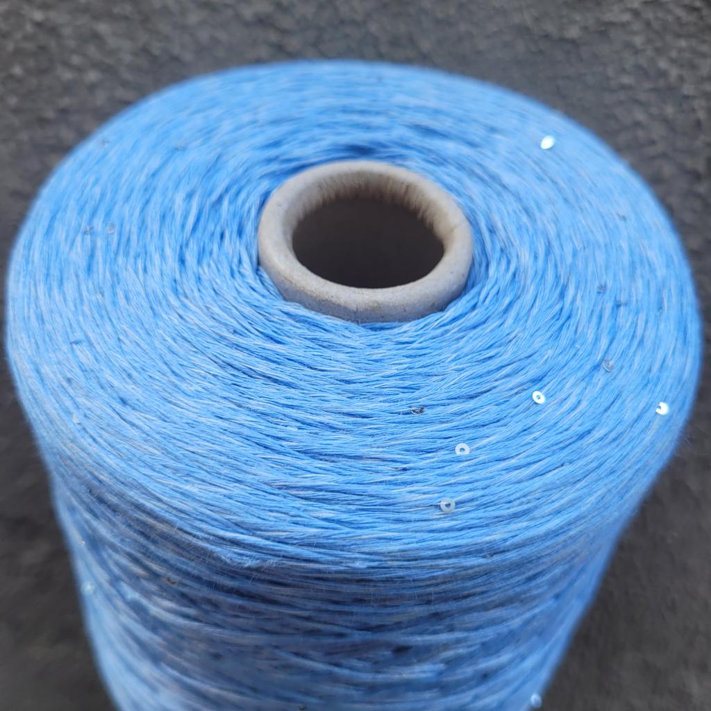 Пряжа в бобинах Lino 4300 с пайетками незабудка. Цена за 10гр