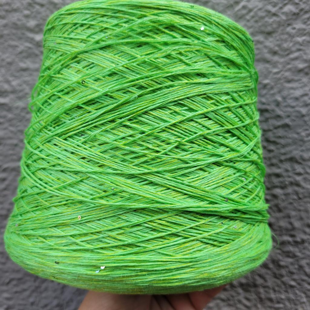 Пряжа в бобинах Lino 3800 с пайетками лайм. Цена за 10гр