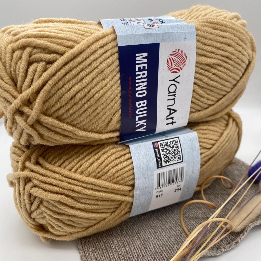 Merino Bulky YarnArt ( Мерино Балки от ЯрнАрт ) – это объемная, мягкая, теплая, плотно скрученная, равномерная по толщине нитка является универсальным решением для зимних вещей. Она приятная на ощупь, почти наполовину состоит из шерсти, с добавлением высококачественного акрила, что позволяет изделию держать форму, придает устойчивость к усадке и выцветанию. Пряжа имеет равномерное окрашивание, сохраняет цвет после стирки, отлично подходит для вязания объемных теплых вещей: платьев, кардиганов, жилетов свитеров, шапок и шарфов. Изделия получаются мягкими, теплыми и очень приятными на ощупь.