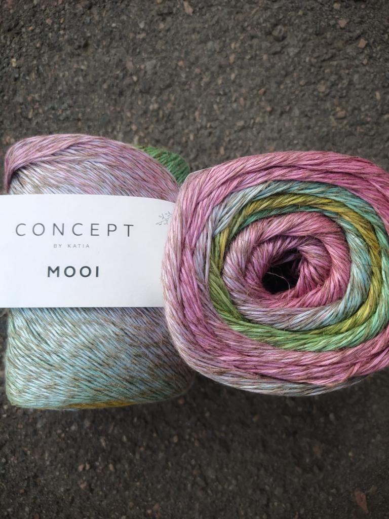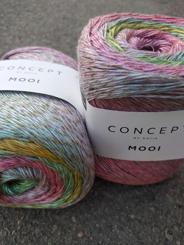 Concept Mooi - тонкая принтованная ниточка, в состав которой входит новое современное волокно лиоцелл и лен. Идеально подходит для вязания яркой одежды и аксессуаров на весенне-летний сезон.