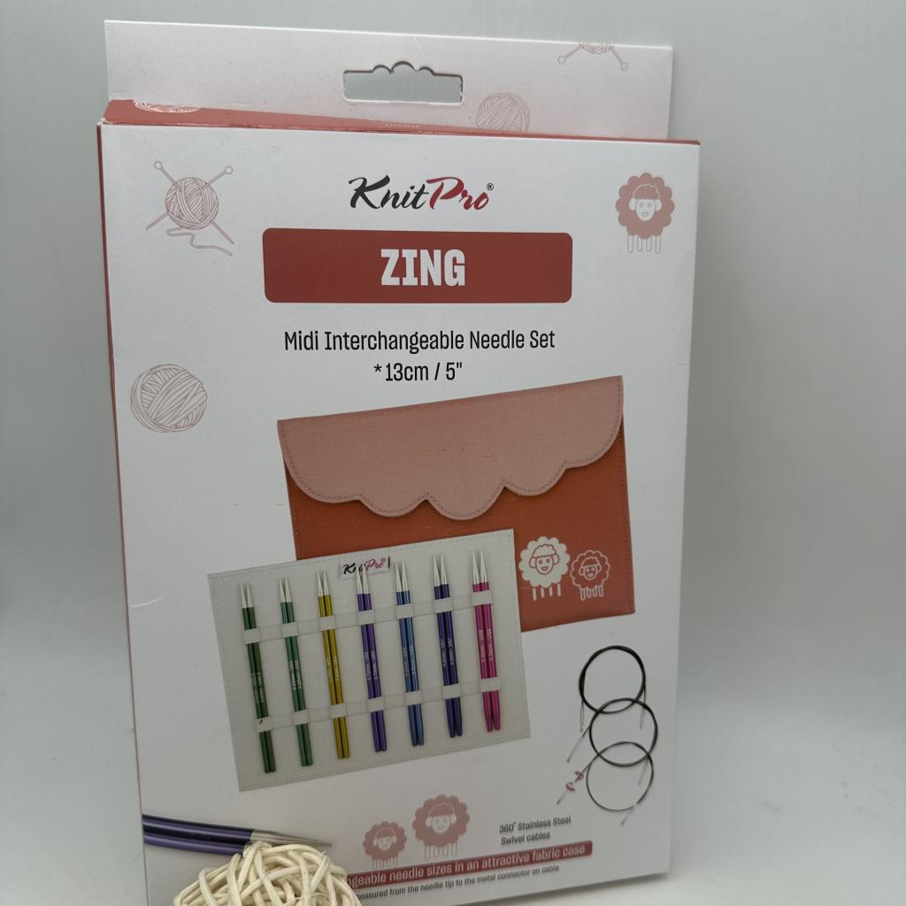 Набор съемных укороченных круговых спиц KnitPro Zing Midi - это набор алюминиевых спиц самых ходовых размеров, от 3 до 5 мм, длиной 13 см. Размер нанесен на спицы лазером, поэтому он не сотрется со временем. Гладкие, в меру острые спицы комфортны в работе и подойдут для вязания самых разных проектов.