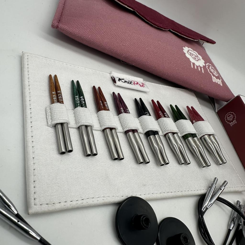органайзер тканевый бордовый, спицы съемные мини 8 размеров (3мм, 3,5мм, 3,75мм, 4мм, 4,5мм, 5мм, 5,5мм и 6мм, длина 5см) – ламинированная береза, тросик поворотный 4шт (27см-2шт, 30см-2шт) - нержавеющая сталь с нейлоновым покрытием, заглушки 4шт - пластик, кабельный ключик 2шт - сталь