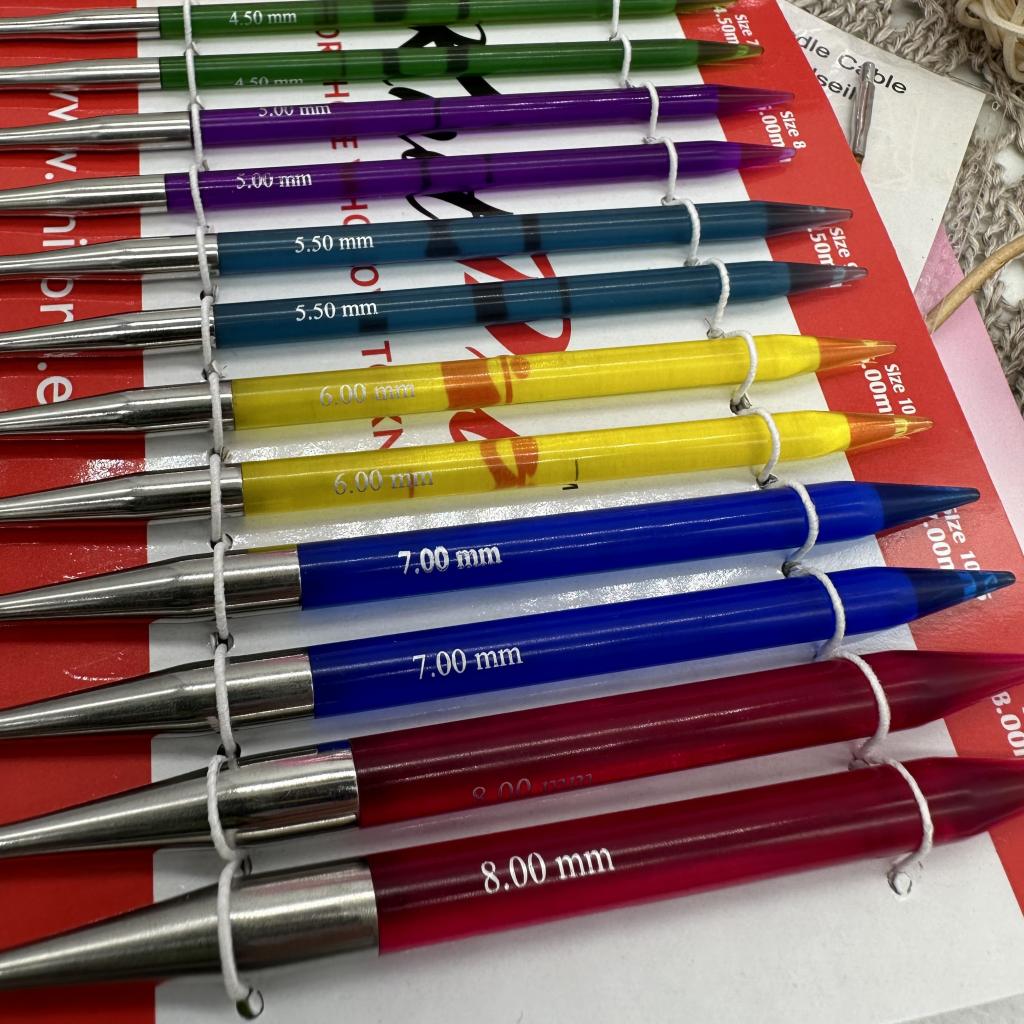 В наборе: 8 видов спиц съемные (3,5мм, 4мм, 4,5мм, 5мм, 5,5мм, 6мм, 7мм, 8мм), тросик (60см, 80см-2шт, 100см), заглушка с кабельный ключиком-4 пары), акрил