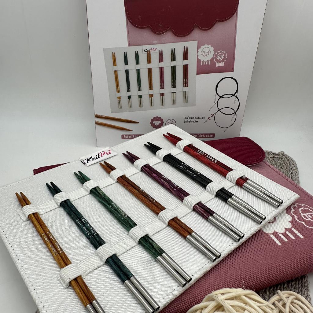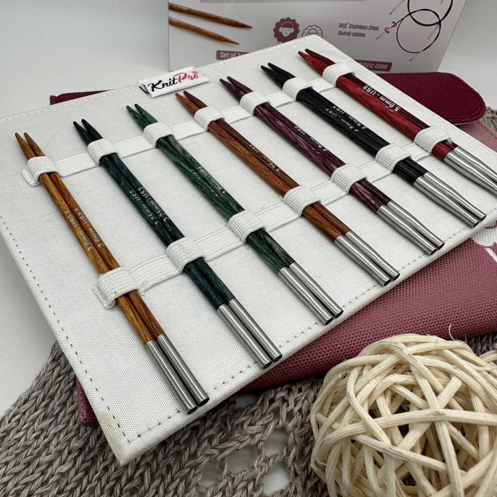 органайзер тканевый бордовый, спицы съемные 7 размеров (3мм, 3,25мм, 3,5мм, 3,75мм, 4мм, 4,5мм, 5мм, длина 13см) - ламинированная береза, тросик поворотный 3шт (60см, 80см, 100см) - нержавеющая