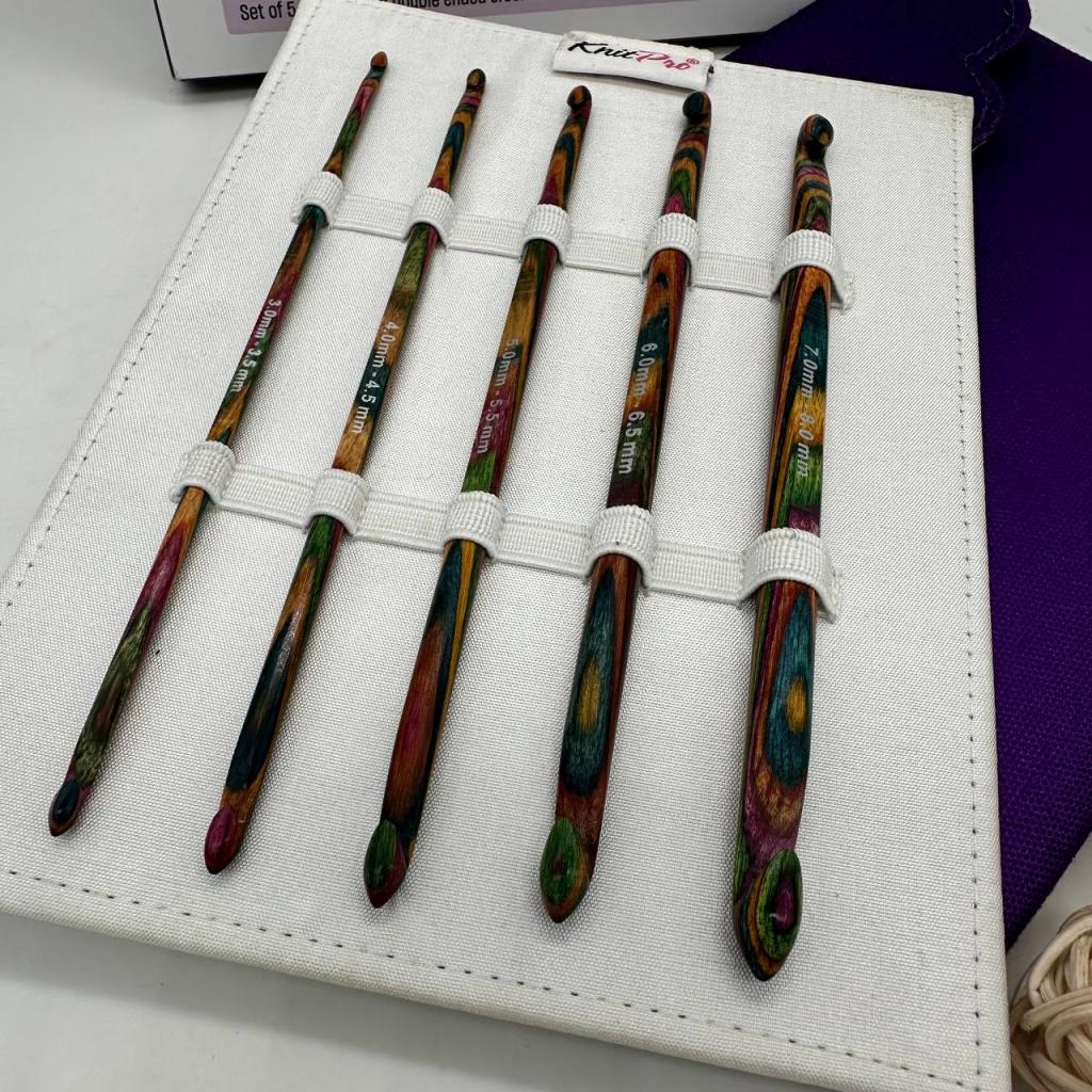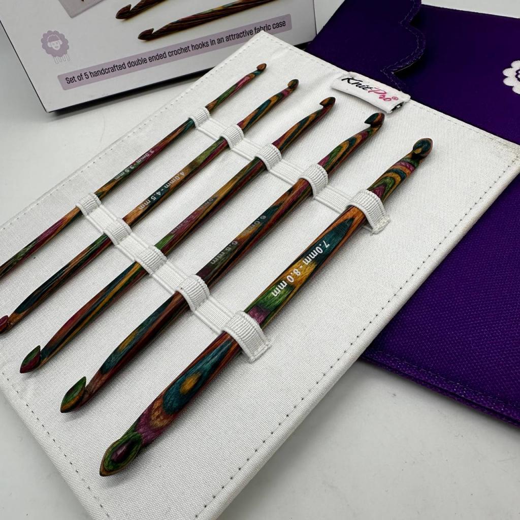 Любители вязания крючком с большим опытом несомненно выберут набор из 5 крючков KnitPro Symfonie, в который входят двухсторонние крючки наиболее востребованных размеров. Деревянные крючки с полированной поверхностью обеспечивают легкое скольжение любой пряжи. Разработанные специалистами, которые хорошо знают и понимают искусство вязания крючком, крючки из этого набора будут служить вам для вязания проектов самого широкого диапазона.