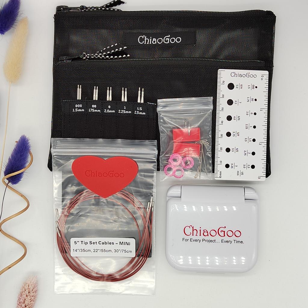 Незаменимый набор для тех, кто любит вязать тонкими спицами или вяжет платки, шали спицами маленького диаметра. Спицы Chiaogoo выполнены из медицинской стали, что исключает присутствие вредных примесей в их составе. Идеально гладкое соединение между металлом и тросиком. Многожильный стальной кабель имеет покрытие из красного нейлона. Размер на спицах и концах тросика нанесён таким образом, что со временем обозначение не исчезнет. В набор входит: - 5 пар съёмных металлических спиц Lace 13 см - 1,5 мм, 1,75 мм, 2,0 мм, 2,25 мм, 2,5 мм - 3 тросика длиной 35 см, 55 см, 75 см - набор аксессуаров (2 коннектора, 2 стоппера, 2 ключа, 6 круговых маркеров, резиновый держатель в виде сердца для соединения спицы с леской) - линейку для определения размера спиц. Набор упакован в компактный черный сетчатый органайзер и имеет отдельный бокс для хранения наконечников и мелочей. Опытные вязальщицы уже давно заметили, что полотно, связанное спицами ChiaoGoo всегда выглядит плотнее, ровнее и аккуратнее. Леска ChiaoGoo TWIST абсолютно не имеет памяти, не извивается, не скручивается в кольца, не обвисает под тяжестью полотна.