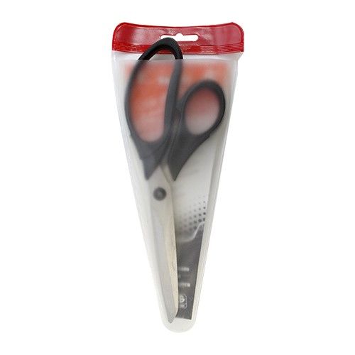 Ножницы из качественной нержавеющей стали. Натяжение между лезвиями можно настроить с помощью регулировочного винта. Подходят для работы с тканями и другими материалами различной плотности. Удобные пластиковые ручки, оптимальный захват лезвий.