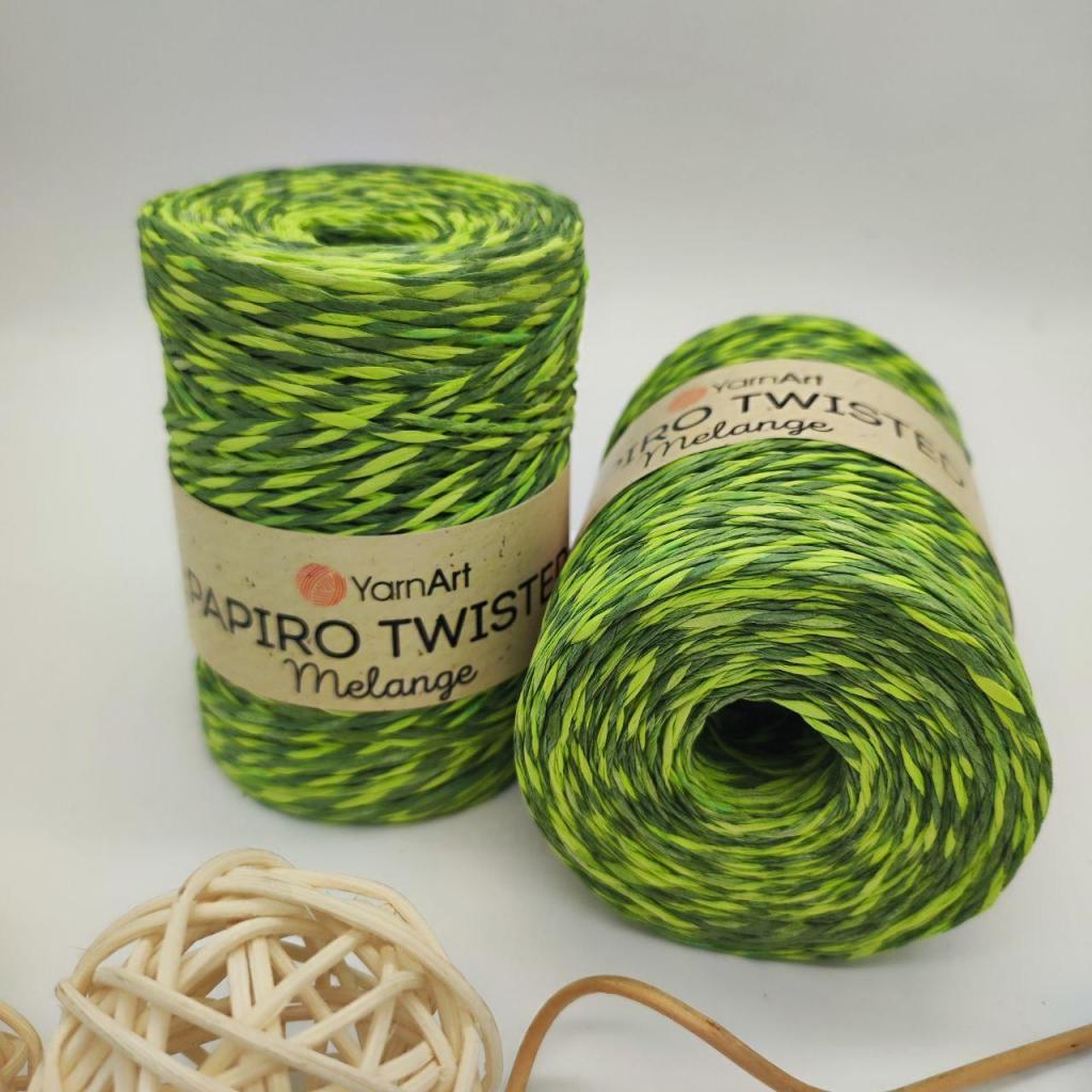 Пряжа Yarnart Papiro Twisted Melange ( Ярнарт Папиро крученая меланж ) создана из экологически-чистого материала ( рафия ), идеально подходит для вязания сумок, шляпок, корзинок, коробов, ковриков, флористики, упаковки подарков. Пряжа из целлюлозы, имитирующая волокна листьев пальмовых листьев рафия. Рафия мягкая, прочная, легко вяжется. Изделия, связанные из рафии не вызывают аллергии, не выцветают, долго сохраняют свой первоначальный вид. Подвергшись воздействию воды, может немного разбухнуть, разгладиться, стать полупрозрачной, но при высыхании возвращается к первоначальному виду. Одна из самых необычных ниточек - изготовлена из прессованной бумаги. Т.е. на 100% экологична! Рекомендуемый размер спиц/крючка 6.5-9 мм.