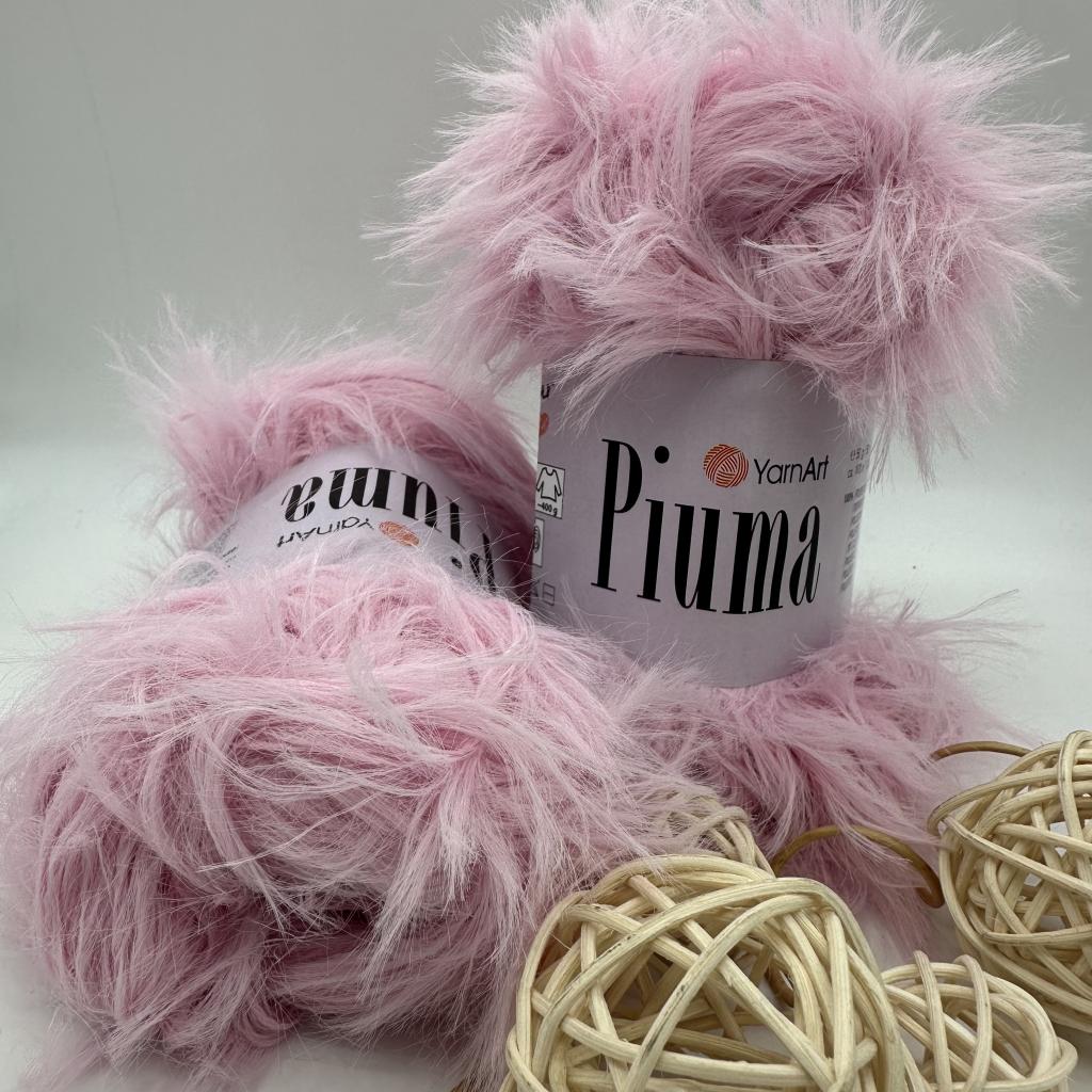 Пряжа YarnArt Piuma ( Ярнарт Пиума ) - это фактурная пряжа типа травка с длинным ворсом. Состав - 100% полиэстер - что позволяет изделию держать форму, придает устойчивость к усадке и не меняет цвет после стирки. Нитка для вязания мягкая, красивая тонкая травка с длинным тонким ворсом. Вязать из такой пряжи одно удовольствие. Пряжа пушистая травка с длинным ворсом отлично подходит для вязания одежды, детских изделий, игрушек, а так же для отделки различных видов изделий, вязания необычных пушистых ковриков. Пряжа для вязания спицами и крючком, производитель рекомендуют №5. Состав: 100% полиэстер