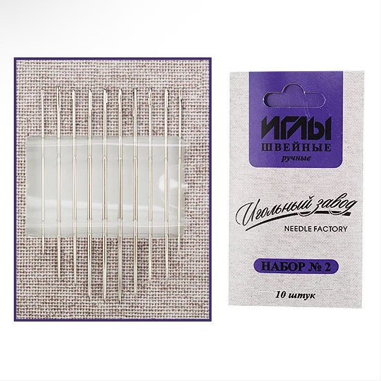 Иглы ИЗ-200902 Набор игл швейных ручных № 2 никелированных (ассорти 10шт)