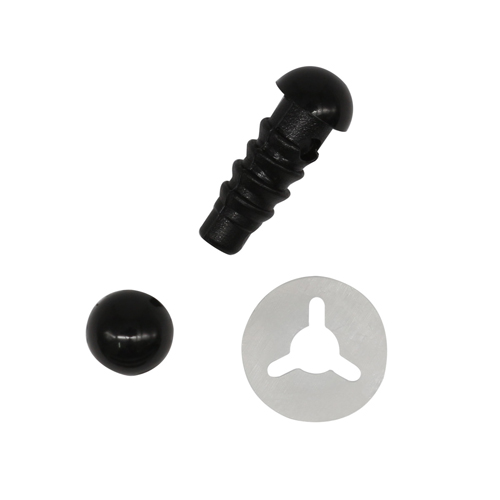 Пластиковые глазки-бусинки на винтах. Винт вдевается в материал и закрепляется с обратной стороны фиксатором, который идет в комплекте. Предназначены для детских и интерьерных мягких игрушек.