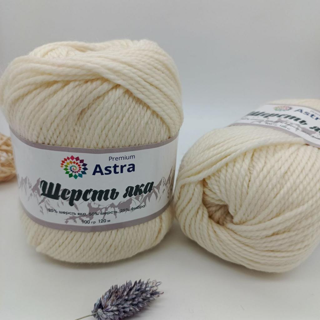 'Шерсть яка' (Yak wool) – теплая мягкая пряжа от Astra Premium. В оставе шерсть яка, которая обладает лечебными свойствами: помогает улучшить кровообращение, облегчить боль в суставах. При этом она легкая, слегка блестит и шелковистая на ощупь, надолго сохраняет первоначальный вид. Шерсть яка теплее мериноса и кашемира, поэтому смело вяжите из нее вещи на холодный сезон. Волокна микрофибры придают нити дополнительную прочность.