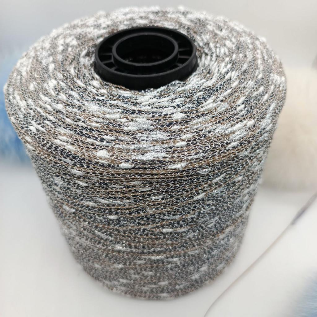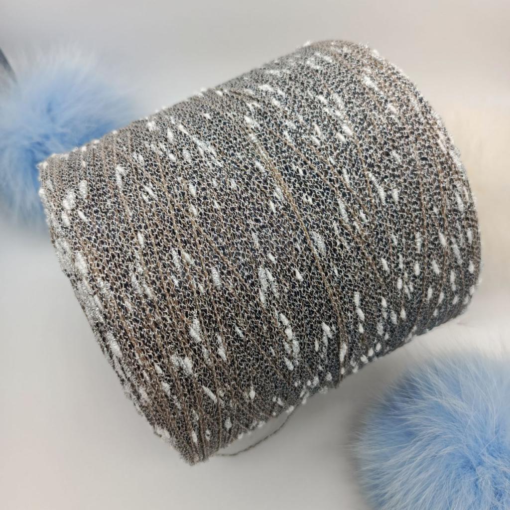 Шишибрики, или узелковый люрекс - это тонкая добавочная пряжа с эффектными утолщениями. Цветовая гамма представлена с блестящей люрексовой ниткой в сочетании с матовыми узелками льняной нити.