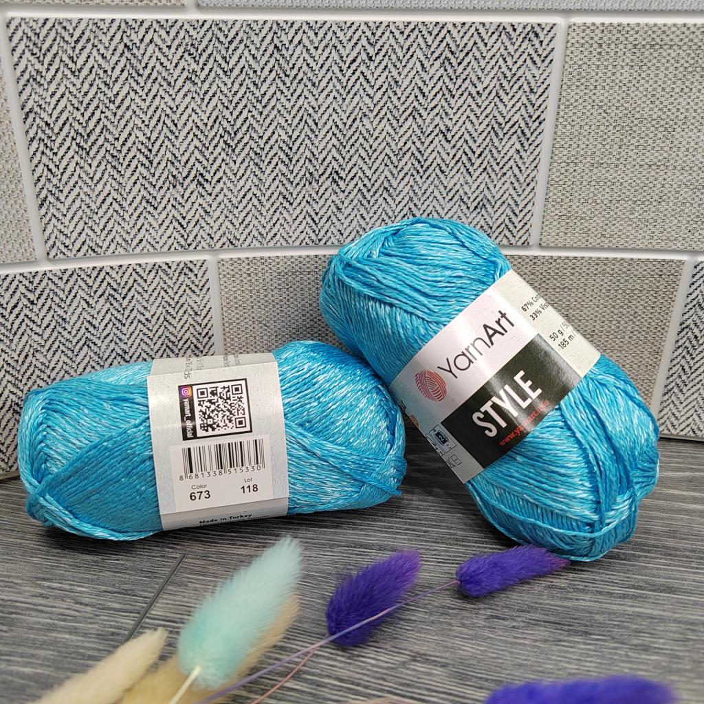 Классическая летняя хлопковая пряжа с вискозой, которая на солнце потрясающе поблёскивает. На ощупь пряжа мягкая и приятная к телу, она отлично смотрится в изделии. Пряжа Style состоит из хлопковой нити, оплетённой нитью вискозы, которая и придаёт связанным из неё вещам блеск..
