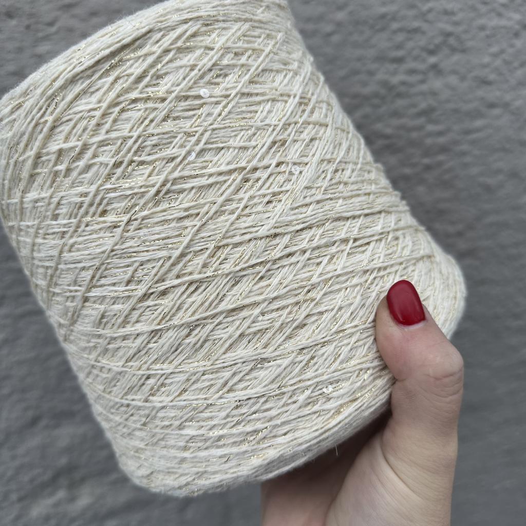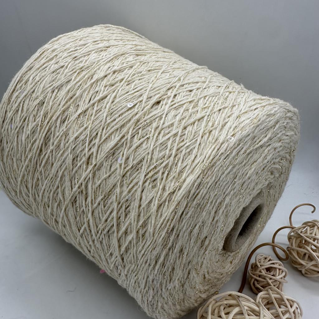 Пряжа в бобинах Susanna 5200 молочный пайетки + люрекс золото. Цена указана за 10гр