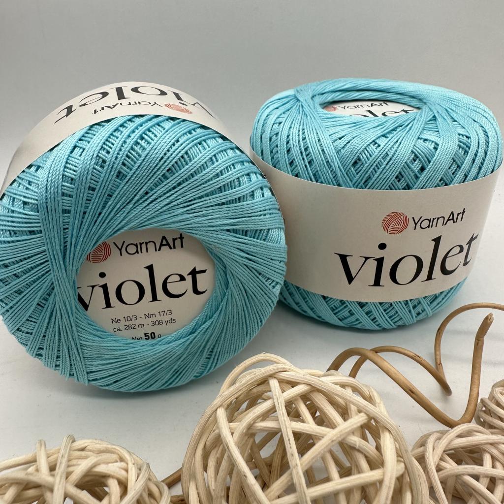 Violet - это тонкая и натуральная пряжа от известного Турецкого бренда YarnArt ( Ярнарт ), приятная на ощупь, состоит из 100% хлопка. приятно удивит и порадует вязальщиц изящностью и фактурой нити, а так же превосходным качеством. Виолет поставляется в заводской упаковке по 6 мотков. Все мотки в упаковке одной партии. Тонкая, хорошо скрученная нитка удобна в работе, не расслаивается, гладкая и блестящая благодаря мерсеризации. Изделия из мерсеризованного хлопка хорошо держат форму, не вытягиваются и не садятся. Цвет устойчивый и не выгорает на солнце. Связанное полотно отлично держит форму и цвет даже после многих стирок. Нить тонкая, хорошо скручена, имеет ненавязчивый блеск. Хлопковая пряжа violet от yarnart ( Yarn Art ) отлично подходит для вязания летних вещей: топов, накидок, кардиганов, прекрасна для создания ажурных салфеток, скатертей.