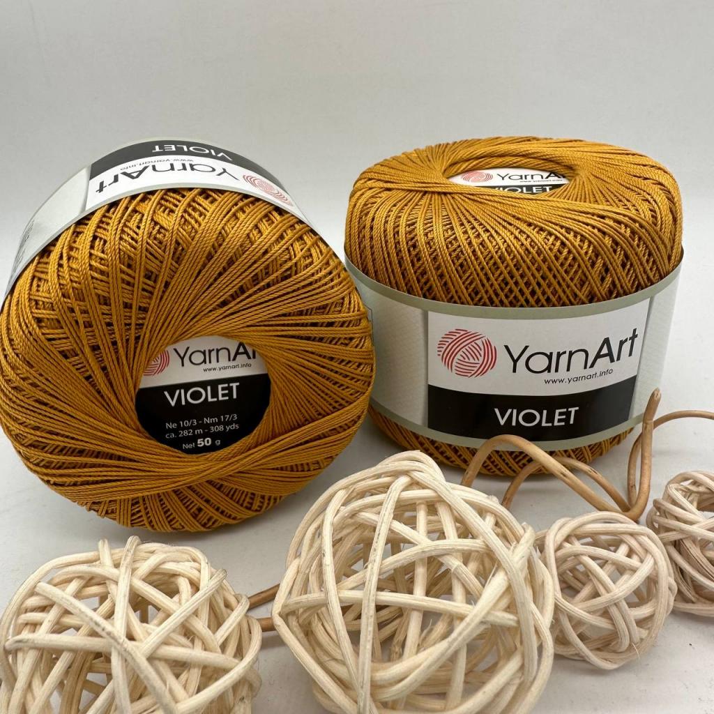 Violet - это тонкая и натуральная пряжа от известного Турецкого бренда YarnArt ( Ярнарт ), приятная на ощупь, состоит из 100% хлопка. приятно удивит и порадует вязальщиц изящностью и фактурой нити, а так же превосходным качеством. Виолет поставляется в заводской упаковке по 6 мотков. Все мотки в упаковке одной партии. Тонкая, хорошо скрученная нитка удобна в работе, не расслаивается, гладкая и блестящая благодаря мерсеризации. Изделия из мерсеризованного хлопка хорошо держат форму, не вытягиваются и не садятся. Цвет устойчивый и не выгорает на солнце. Связанное полотно отлично держит форму и цвет даже после многих стирок. Нить тонкая, хорошо скручена, имеет ненавязчивый блеск. Хлопковая пряжа violet от yarnart ( Yarn Art ) отлично подходит для вязания летних вещей: топов, накидок, кардиганов, прекрасна для создания ажурных салфеток, скатертей. Рекомендуемый размер спиц и крючка: № 2,5. Состав: Состав пряжи